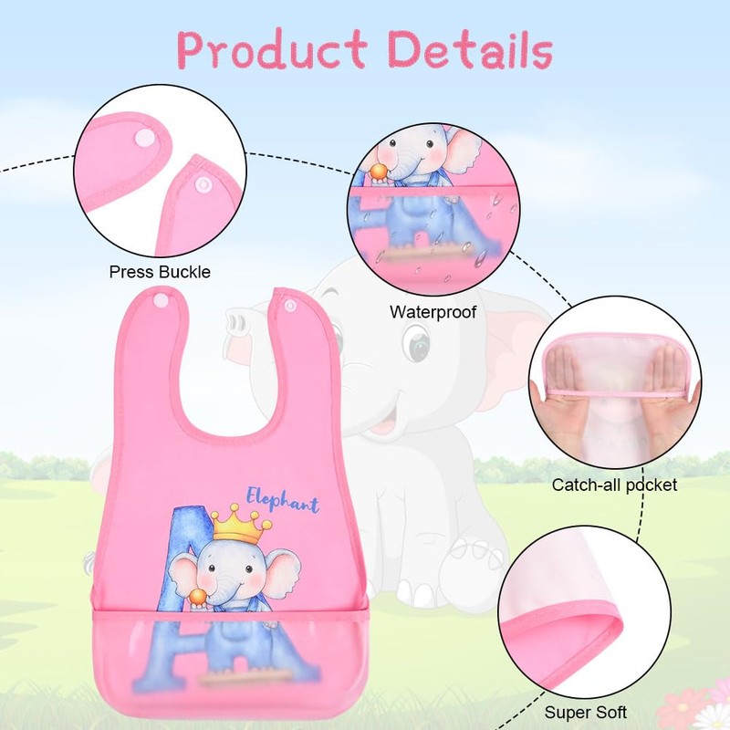 - Snap-On Waterproof Bib: Each baby drool bib has adjustable plastic snaps, ensuring babies of all sizes can wear our bibs. The buckles are made of hypoallergenic material, harmless to baby's sensitive skin. And the buckles are strong enough to withstand the pulling force of babies, babies and toddlers can use these bibs easily.