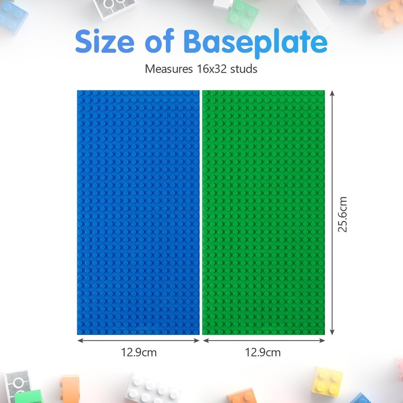 - 【Size & Application】Measuring 25.6 x 12.9cm, classic standard size, the Classic Board is 100% compatible with all major construction brick sets. Kids can build different scenes on this color base, such as a castle, fortress, farm, town or any other scene they have in mind.