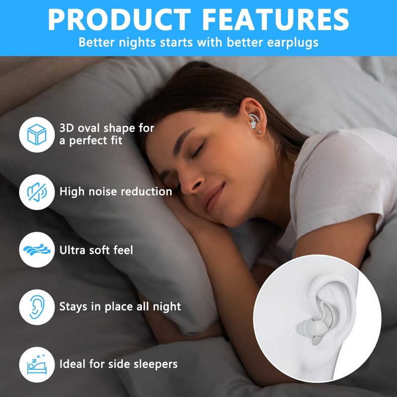- Efficient Noise Reduction The noise reducing earplugs for sleep feature high noise reduction rate, which can attenuate the sound source and reduce the noise. These comfortable ear plugs for sleeping protect your hearing and allow you a deep, comfortable sleep even when you are snoring at home or travelling.