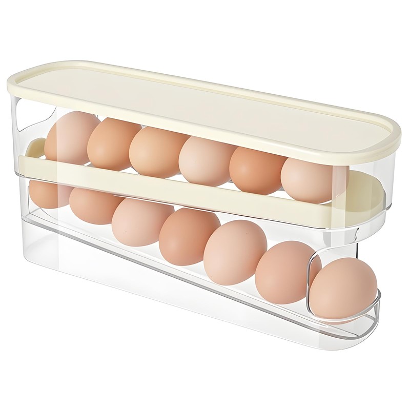 - Space-saving: The double-layer shelf takes up little space and saves space in the fridge. The egg box can be placed in the corner or on the side door of the refrigerator. The slim egg rack keeps the fridge tidy and organised.