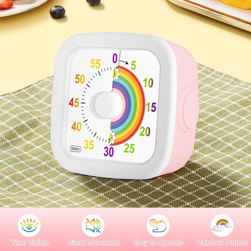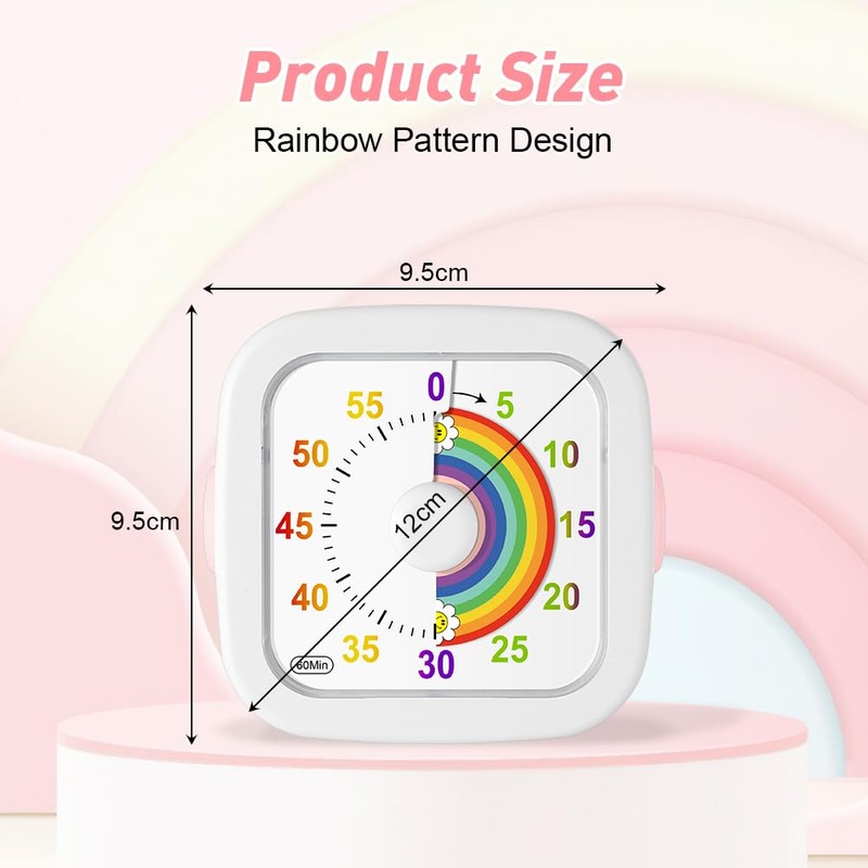 - FUNNY RAINBOW TIMER The rainbow pattern design can arouse children's interest and help complete assigned tasks. Over time, the coloured disc of the quiet time management tool disappears counterclockwise and clearly displays the remaining time, which can help develop an awareness of time management.