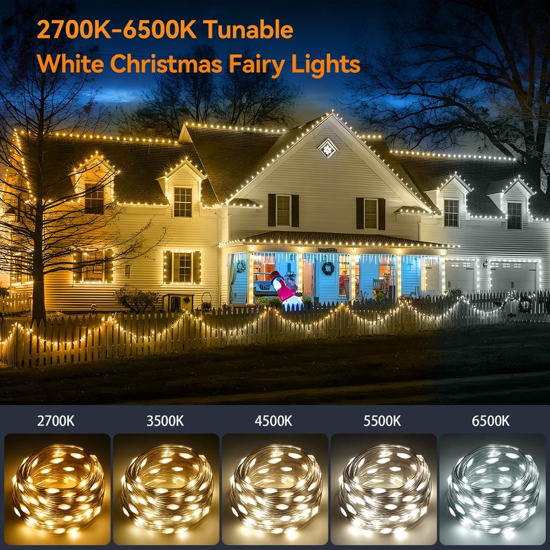 - 5 Color Temperatures: Compared to ordinary string lights, HOUHUI outdoor fairy string lights feature an upgraded design that allows you to easily switch between 5 color temperatures (2700k, 3500k, 4500k,5500k,6500k)