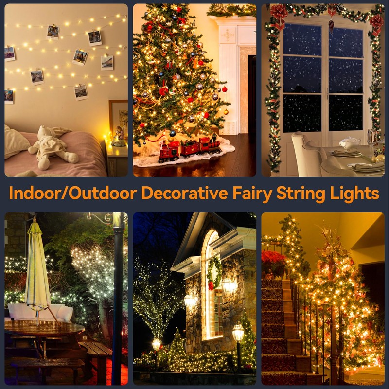 - 8 Lighting Modes: Christmas lights string with 8 different lighting modes, Steady on, In Waves, Sequential, Slo-Glo, Chasing/Flash, Slow Fade,Twinkle/Flash,Combination. With Timer Mode (6Hrs on,18Hrs off), providing greater energy-saving benefits