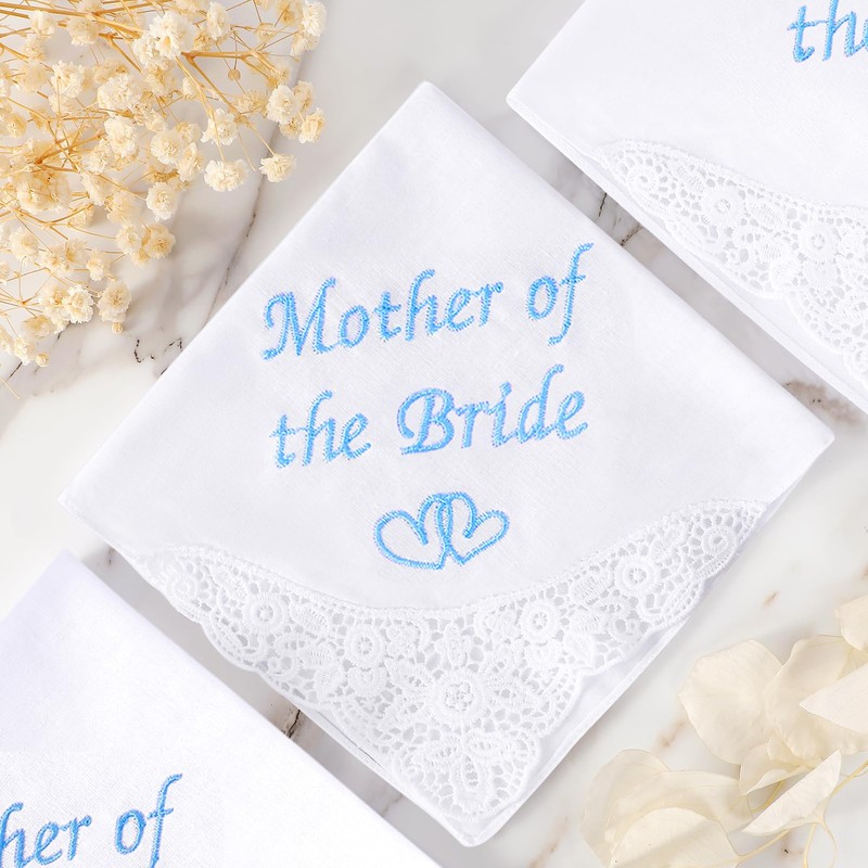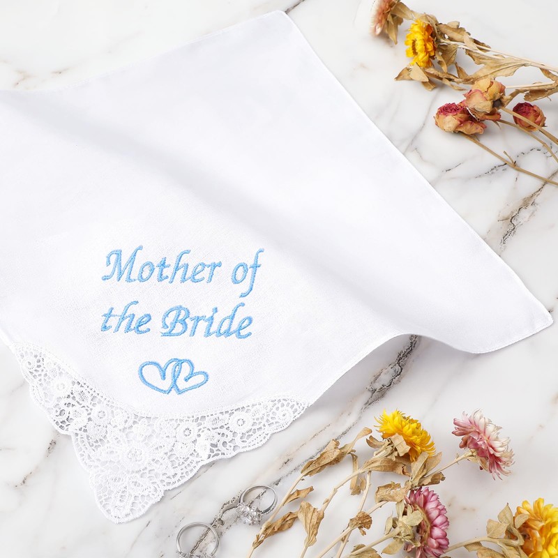 - Handkerchief for Wedding Day: White embroidery hanky can be meaningful wedding gifts for not only the bride and groom, but also for the mother of the bride, father of the bride, mother of the groom, father of the groom, stepfather, stepmother or other special guest. Our embroidered wedding handkerchief will carry your most important memories.