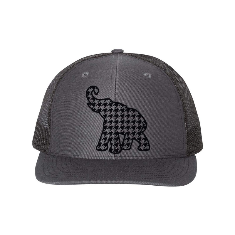Hounds Tooth Elephant/Trucker Hat/Roll Tide/Alabama Football, Black Text (Charcoal/Black)
