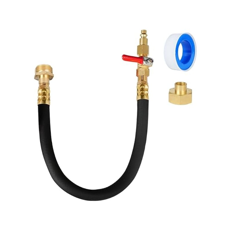 Hourleey RV Winterizer Kit, 18.5" Sprinkler Winterizing Blowout Adapter with Shut Off Valve, Air Compressor Quick-Connect Plug to 3/4" Hose Blow Out Adapter for Motorhome Boat Camper Travel Trailer