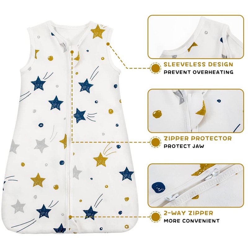 - COOL & COMFY, YEAR ROUND - We leverage the soothing softness of hand-selected 100% pure cotton with 0.5 TOG count a fancy way of saying this is the ideal wearable blanket for a baby's porous, sensitive skin. Wear alone in the hotter months or pair with warmer to stay toasty and content during drafty winter days.