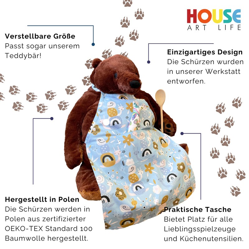 - High-quality material: HOUSE ART LIFE children's apron is made of lightweight cotton fabric - is soft and comfortable. It is machine washable.