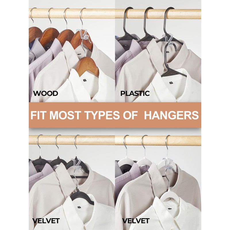 - 【Home and Dorm Essentials 】These ultra space saving hanger measure 1.6”x1.3”x1.2”(LxWxH) and are suitable for many different kinds of hangers, including plastic hangers, velvet hangers, wooden hangers, metal hangers, sponge hangers, as well as baby clothes hangers, pants hangers, and skirt hangers. Our magic hangers can be used not only houses but suitable for apartments and dorm or other limited spaces, dorm room essentials for college students girls