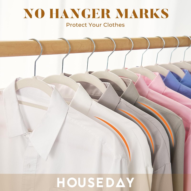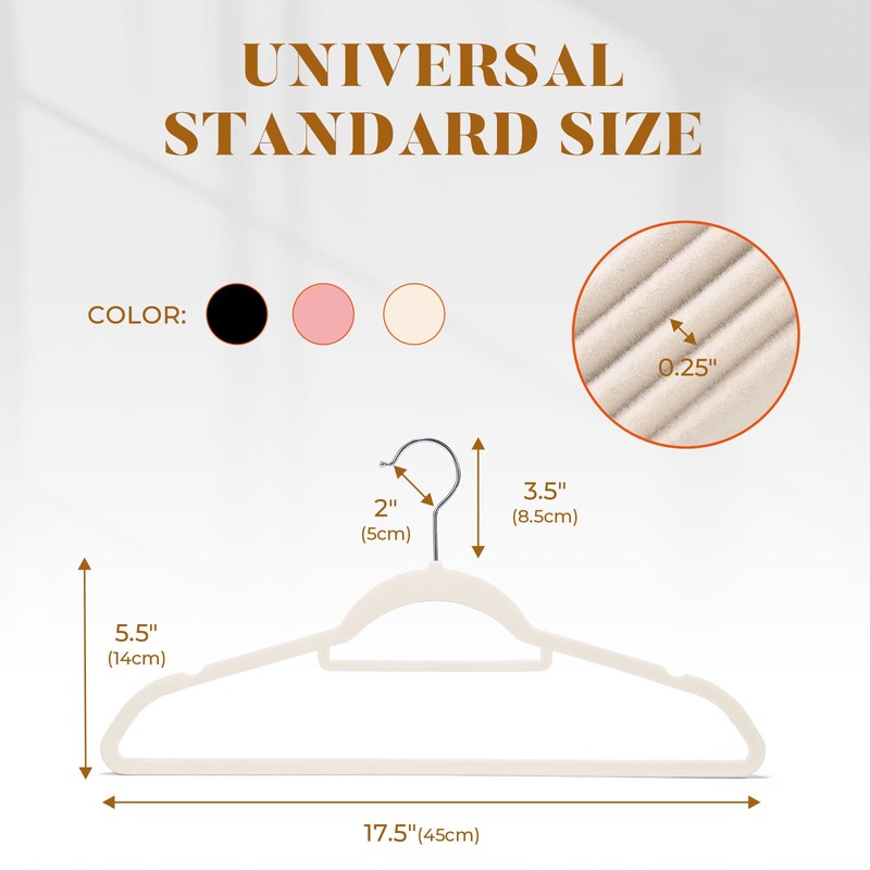 - Hangers Space Saving: Maximize your closet space with our all-match slim ivory velvet hangers; Ultra-thin design, 360° swivel hook, and contoured shoulder line preserve clothes shape