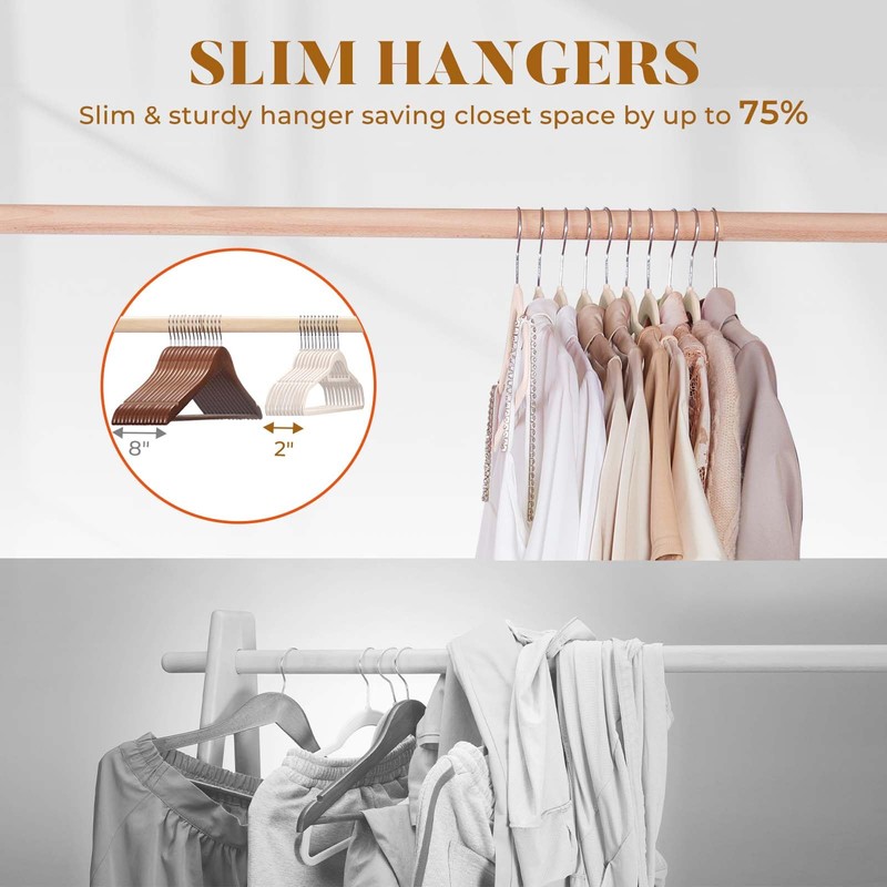 - Non Slip: Velvet-coated surface of our hangers prevents your suits, pants, and delicate blouses from slipping off, ensuring your clothes stay wrinkle-free and ready to wear