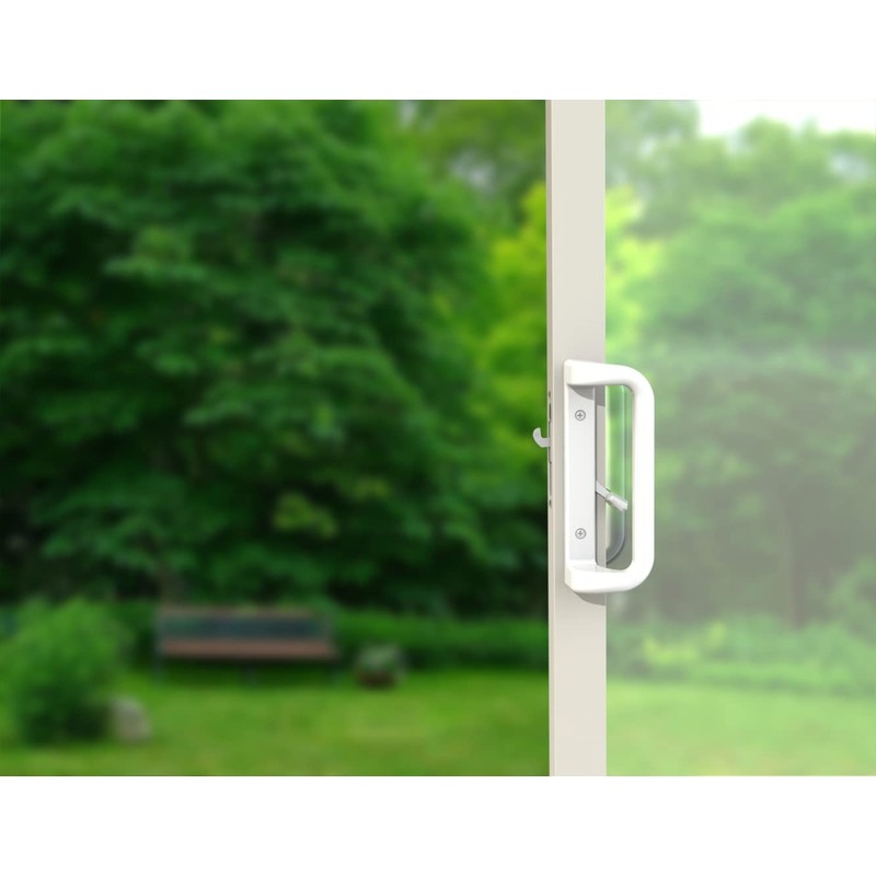 House Guard White Patio Door Handle Set with Mortise, Suitable for Replacement Doors Lock 3-15/16”Screw Hole Spacing.Choices That Add a Unique to Your Patio Glass Sliding Door.