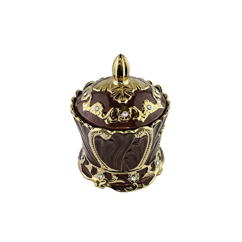 House Of Orishas Oya Porcelain Tureen - Brown with Golden Accents - Classic Style - 7" H x 8.25" W x 6" D