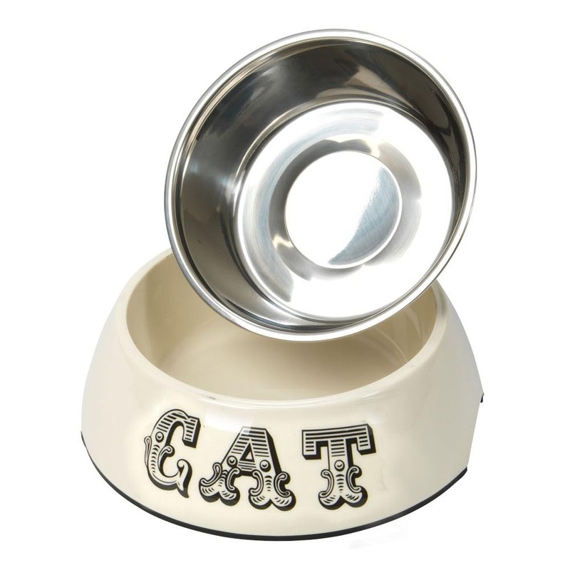 - This cream-colored House of Paws melamine food and water bowl is both fashionable and durable, perfect for your cat.