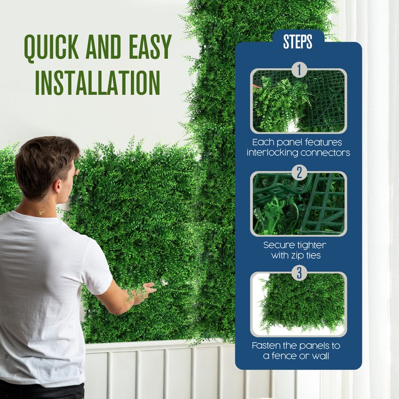 - INDOOR AND OUTDOOR USE: Our artificial plant panels can bring to life to a space that is either indoor or outdoor. Turn your backyard into a Secret Garden type hangout or transform your living room into a lush reading nook.
