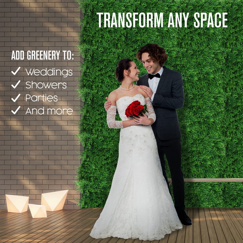 - SOCIAL MEDIA WORTHY PHOTOS: With our 20"x20" artificial plant panels, you can set up a gorgeous photo backdrop for birthdays, baby showers, bachelorette parties, or even just to step up your social media game.