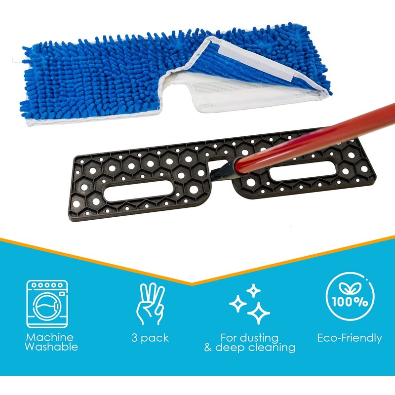 - REMARKABLE SUSTAINABILITY. With a 3 pack, these mop heads are durable and easy to switch out, this replacement pad can also be machine washed up to a hundred times without losing efficiency. It is suitable for use on all types of hard floor surfaces in homes, work, schools, restaurants, and much more.