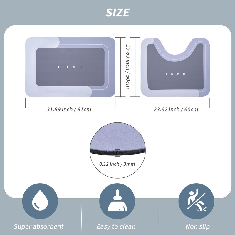 - 【Soft and Comfortable】They are made of high-quality diatom mud material, which is comfortable to stand on, with smooth surface, no fiber falling, and will not fade after long time use. They are super absorbent floor mats that suitable for family life.