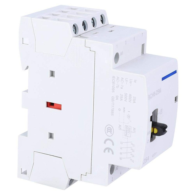 Household AC Module Contactor 4P 25A 230V with Manual Switch Household AC Contactor for Electric Building Control DIN Rail Mounting Miniature Contactor (4NO)