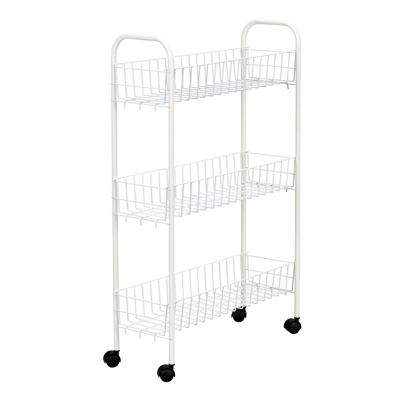 Household Essentials 05121 Slim Line 3-Tier Metal Storage Cart | Laundry Room Rolling Organizer | White