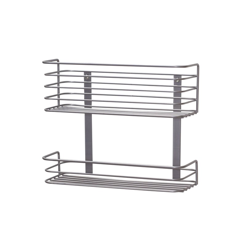 Twice the storage on the cabinet door with Household Essentials 2-tier storage basket, a metal storage basket with stacked storage that mounts to the door of any cabinet or closet-or to any flat surface! this double storage rack organizer has a taller basket on top and a shorter basket below. Altogether, the double basket is 8.15 inches tall x 10.24 inches wide and sticks out from the cabinet 3.94 inches. The top basket is approx. 3.5 inches tall, and the lower basket is approx. 1.5 inches tall with a 3.5-Inch Gap in between. Ideal for kitchen cabinets to hold cleaning sponges and cleaners! or use it in the bathroom for hair products! it's convenient storage on almost any flat surface.