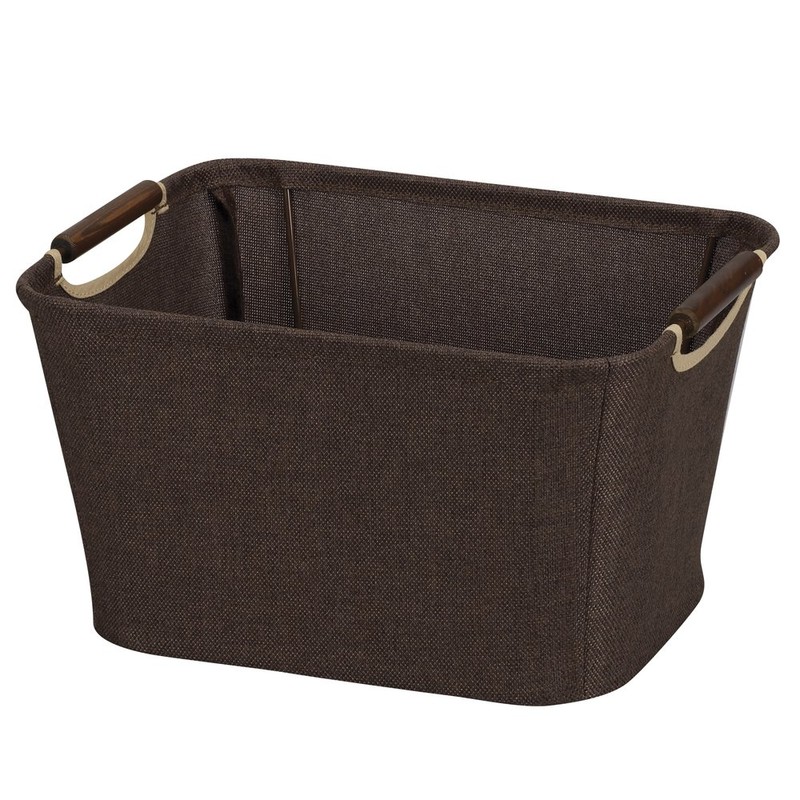 Household Essentials Small Tapered Storage Bin with Wood Handles, Coffee Linen