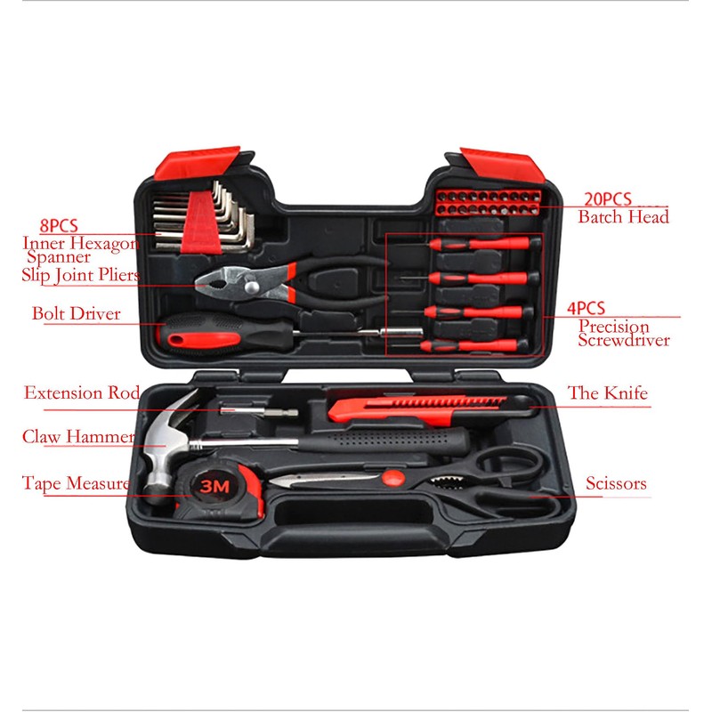 Household Tools Kit, 39 Pcs Home Essential Repairing Sets with Plastic Toolbox for Home, College and Automobile (red)