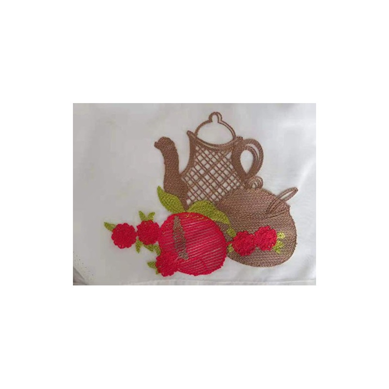 - Beautiful Embroidered Kitchen curtain Pair with valance and tiebacks