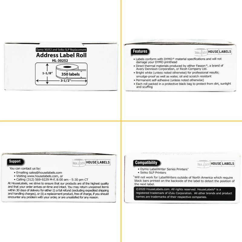 Houselabels DYMO LW 30252 SYNTHETIC Address Labels for LabelWriter - 16 Rolls of 350 - FAST