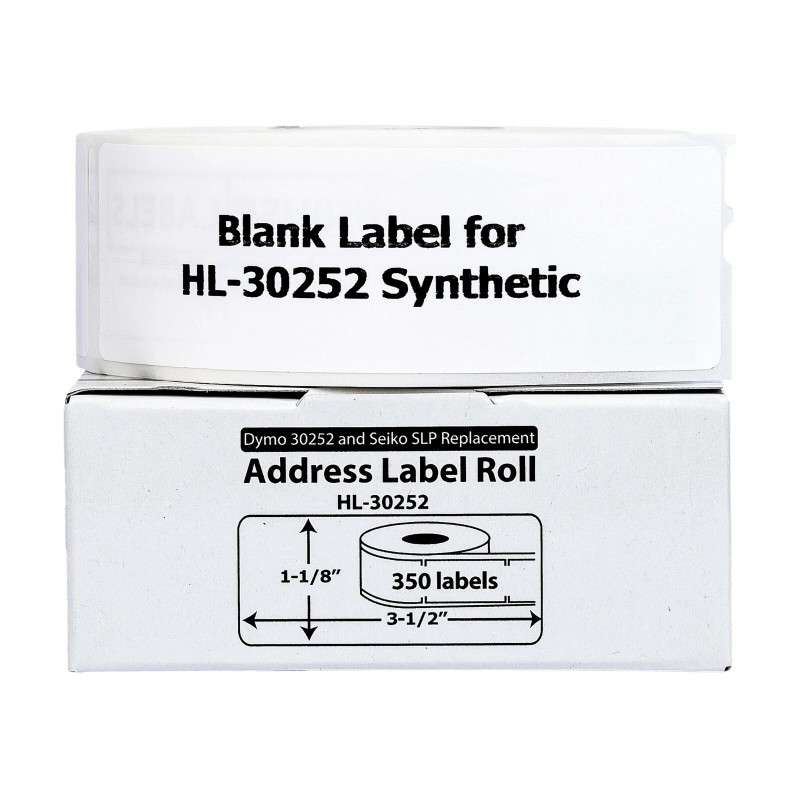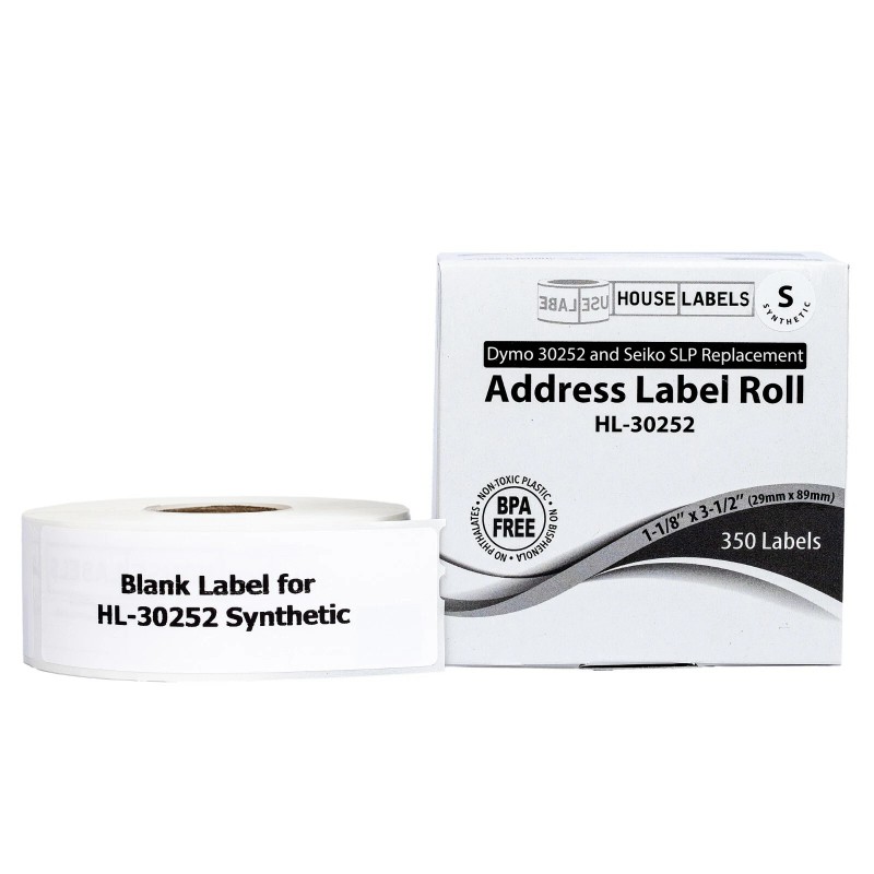 DYMO-Compatible 30252 POLYPROPYLENE SYNTHETIC Address Labels (1-1/8" x 3-1/2") -- BPA Free! (16 Rolls; 350 Labels per Roll)