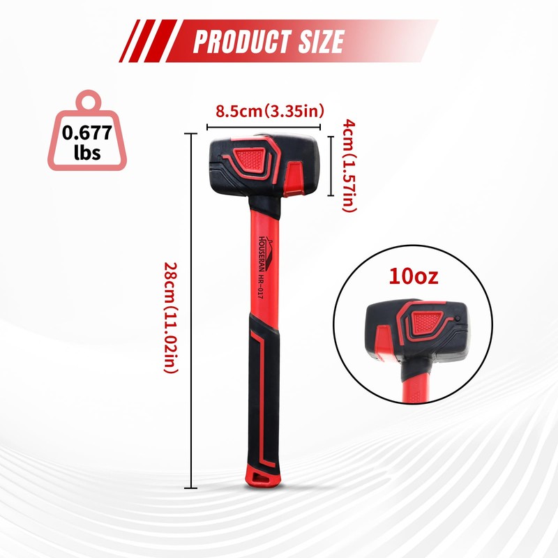 HOUSERAN Mallet, Rubber Mallet Hammer, 10 oz Mallets Hammers, Soft Face Hammer, Rubber Hammers, Rubbers Mallets For Woodworking, Flooring, Crafts, Jewelry Making, Red and Black(307g)