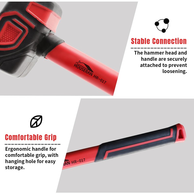 - 【Secure Head Attachment】This soft hammer features a one-piece construction with a reinforced connection between the rubber mallot head and handle, ensuring safety and stability during use with no risk of loosening.