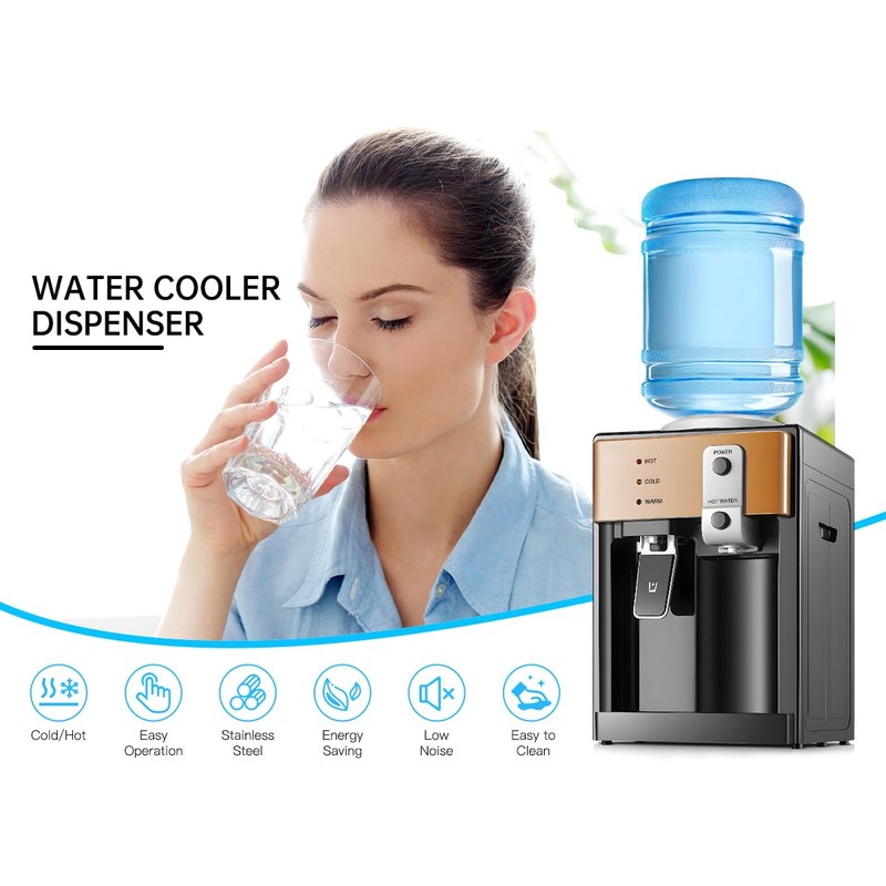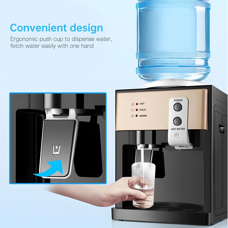 - 3 IN 1 Counter top water dispenserThe water dispenser can make hot, cold, warm water. It can be used in four seasons. With work indicator: Visible working state. The heating system uses the Fast and instant heating technology to heat your water. You can choose between a Crisp Cold & Piping Hot Output, making it ideal for cool refreshments or toasty beverages.