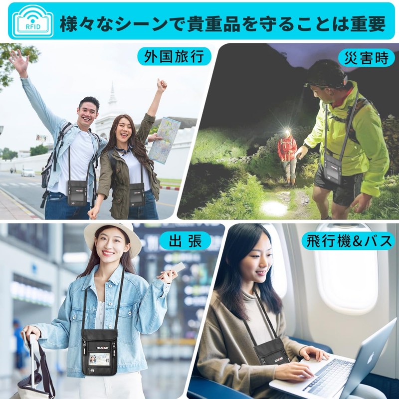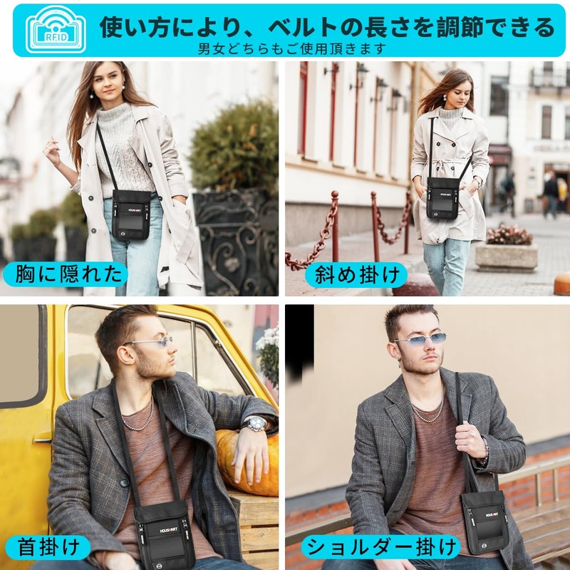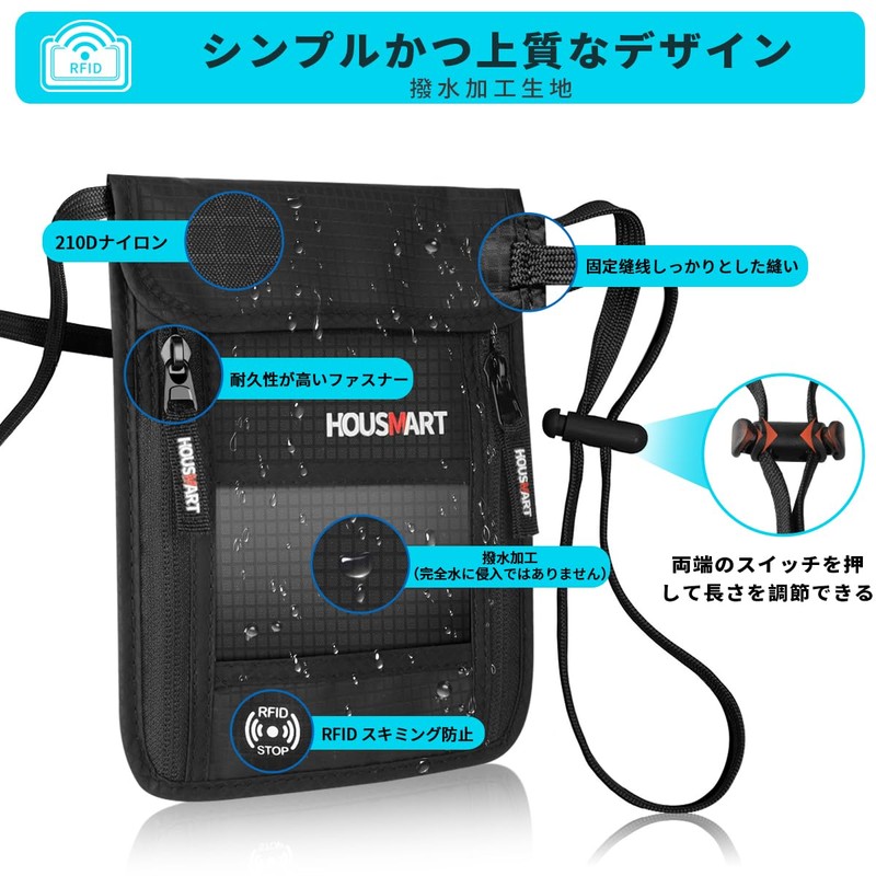 HOUSMART Passport Case, Neck Lowering, Anti-Skimming, Passport Cover, Security Pouch, Overseas Travel, Valuables Security, Convenient Goods, Wallet, Lightweight, Thin, Hidden in Clothes, Water