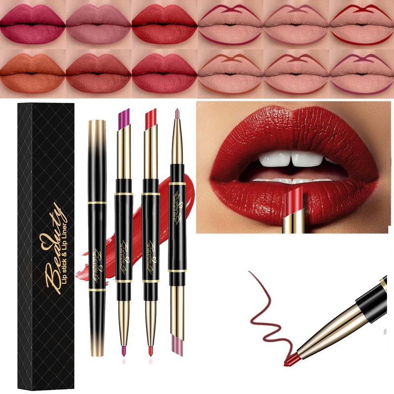 - Lipstick Lip Liner Set: Bunter Matt-Lippenstift-Lipliner 2 in 1, Lippenstifte um Ihre Lippen prall, sexy und voller Versuchung zu machen.