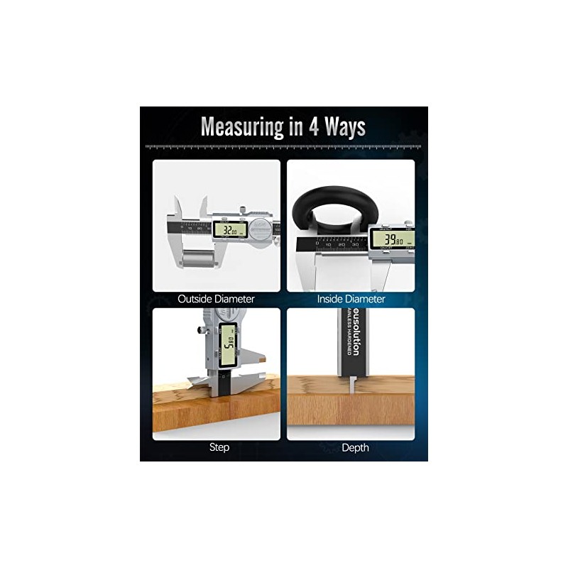 - 3 Units Conversion & RangeOur digital caliper has 3 size modes of mm, inches and fractions, and the measuring range: 0-6inch/0-150mm, accuracy: 0.001inch/0.02mm, resolution: 0.0005inch/0.01mm.