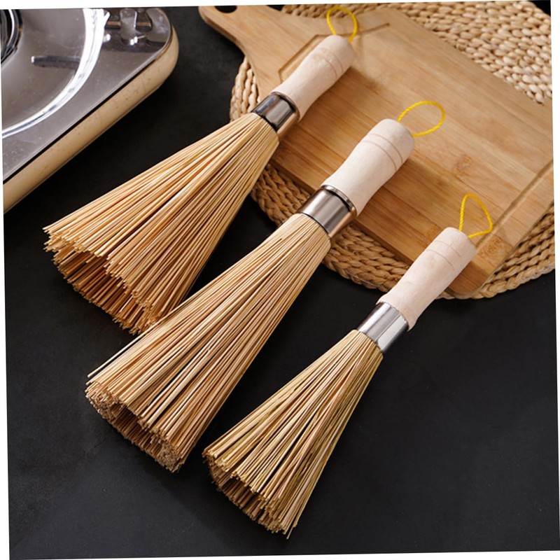 Housoutil 2pcs Bamboo Brush for Wok Saute Set Pot Sets for Cooking Nonstick Wok Accessories Dish Brush Cleaning Brush Pot Brush Non Stick Wooden Plate Multi-use Clean