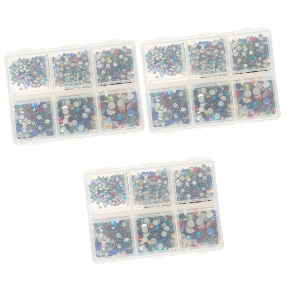 Housoutil 3sets Shiny Nail Art Rhinestones Kit of Flatback Glass Charms for Nail Decoration Craft Projects for Festivals and Daily Manicure Multi-Shaped Crystals