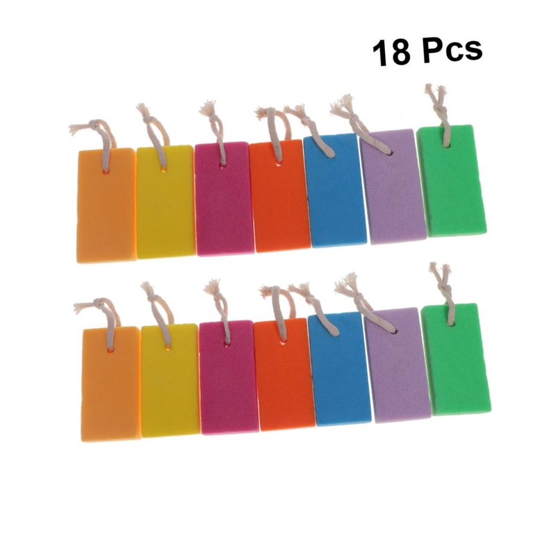 smooth feet The rough grinding surface could remove old and massive effectively and quickly.toilet bowl scrubber Made of , durable and practical for long term use.feet pumice This is a set of 18pcs removers.foot sponge With bright color, with a hanging rope, convenient for you to storage.foot pumice stone Say goodbye to cracked heels and nasty calluses