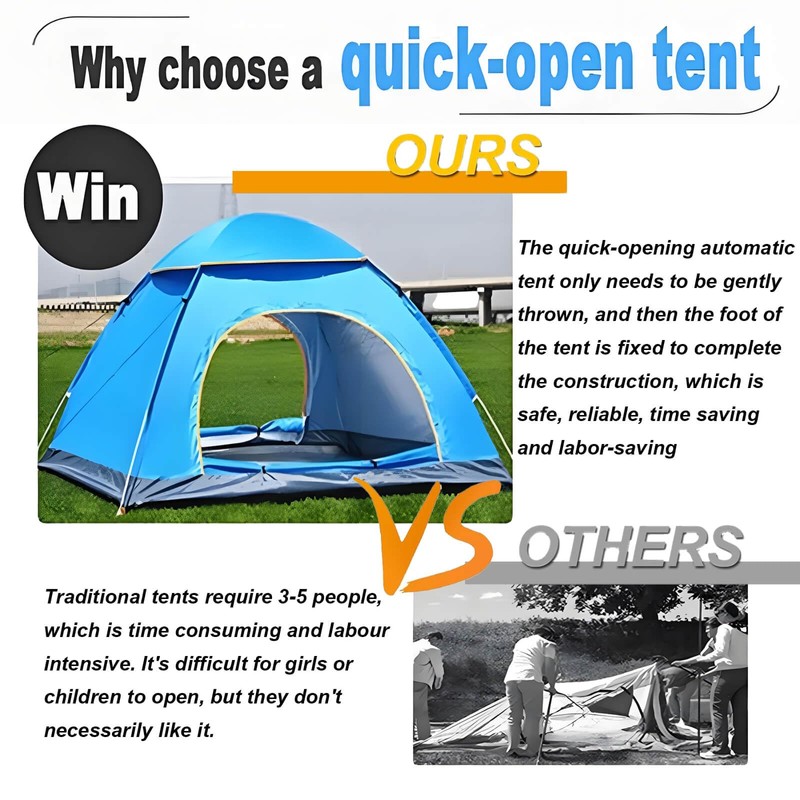 Versatility is key with our outdoor camping tent. Whether you're exploring remote wilderness, attending a lively music festival, or simply having a relaxing picnic, our instant pop-up tent provides the perfect shelter for you and your companions.