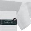 - CONVENIENT AND DISPOSABLE - Its white color adds a touch of elegance to any event. Plus, for fast clean up, this table cover is disposable and can be rolled up and thrown away as soon as your last guest has left. You'll never have to waste time and money laundering linen table covers again!