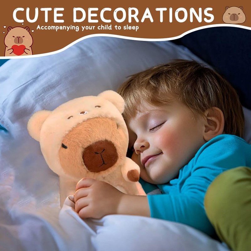 - Nice companion for kids: this Capybara plush toy can also be a good sleeping companion for children. It can be a soothing companion for children when sleeping, watching TV and playing at home. It can also be an excellent companion for children to lean on in the car