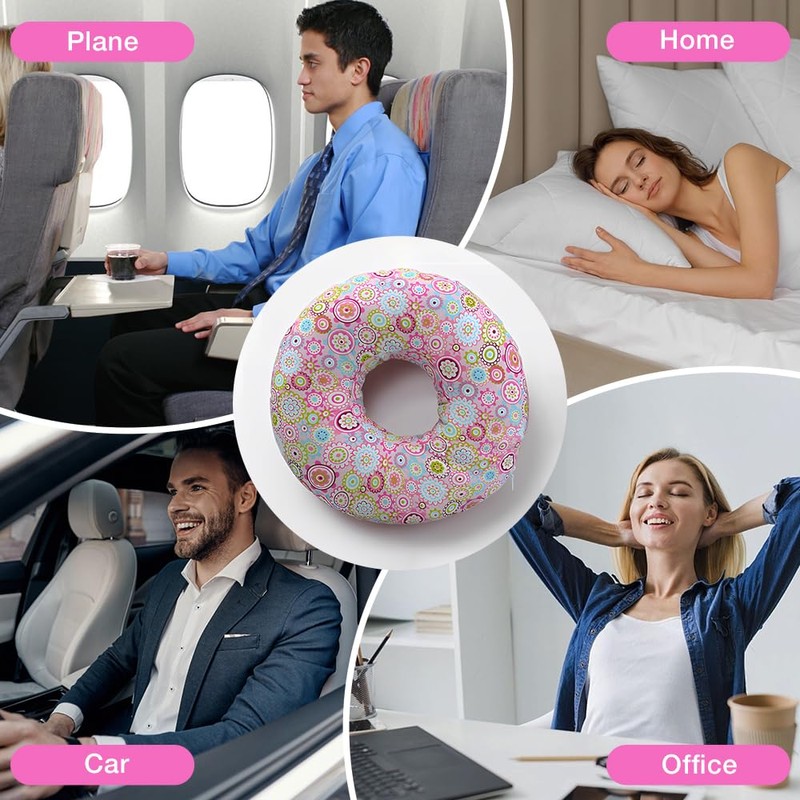 HOVCEH Piercing Pillow, Donut Pillow for Ear Piercing Aftercare, Ear Pillow with Hole for Side Sleepers, Ring Cushion Releasing Ear Pain Ear Inflammation Pressure Sores (Pink)