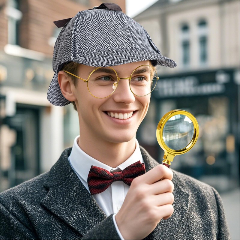 - Package Including: 4 Pieces detective costume accessories. The detective costume includes 1 piece of detective hat, 1 piece of magnifying glass, 2 pair of glasses. Detective costume includes a variety of accessories to meet your dressing needs.