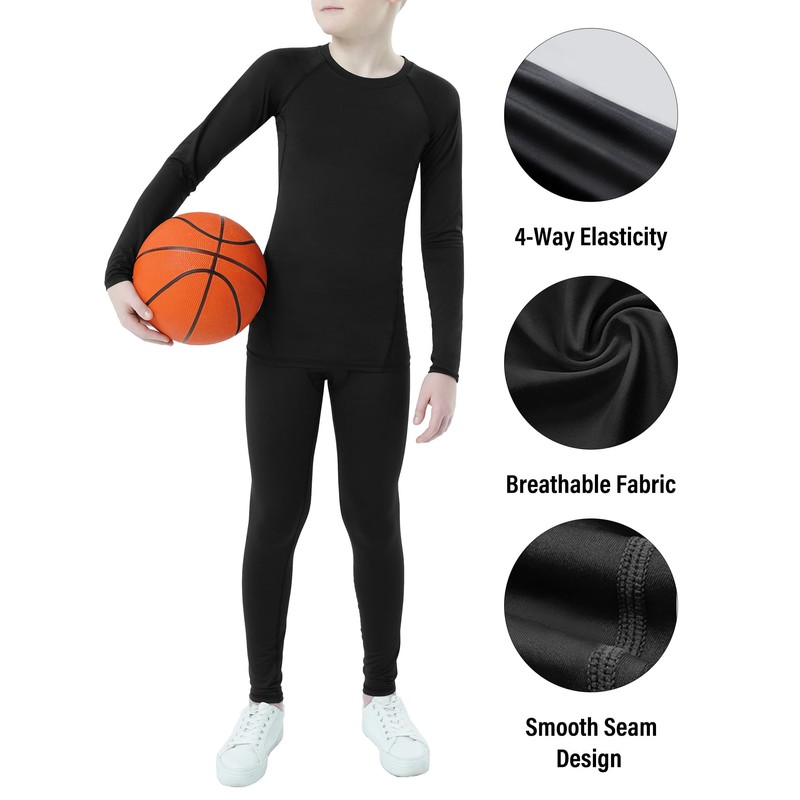 - 【Smooth Seams】: We understand the importance of comfort for active kids. That's why our compression set has smooth seams. These seams are carefully crafted to prevent chafing, even during extended wear. Whether your child is wearing it as a base layer for a thermal undershirt or during a long day outdoor adventure, they won't have to worry about irritating skin.