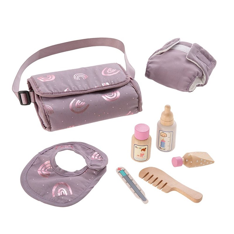 - The howa doll changing bag is sewn in a modern glittering rainbow design and contains 7 accessories.