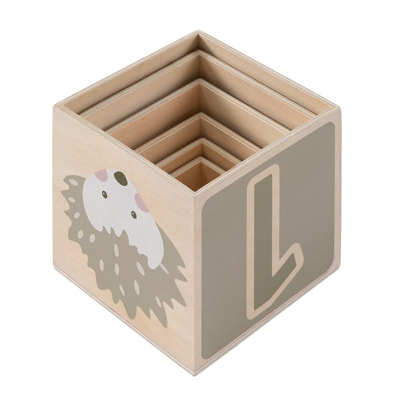 - The wooden stacking tower includes 6 cubes that can be stacked or nested together.