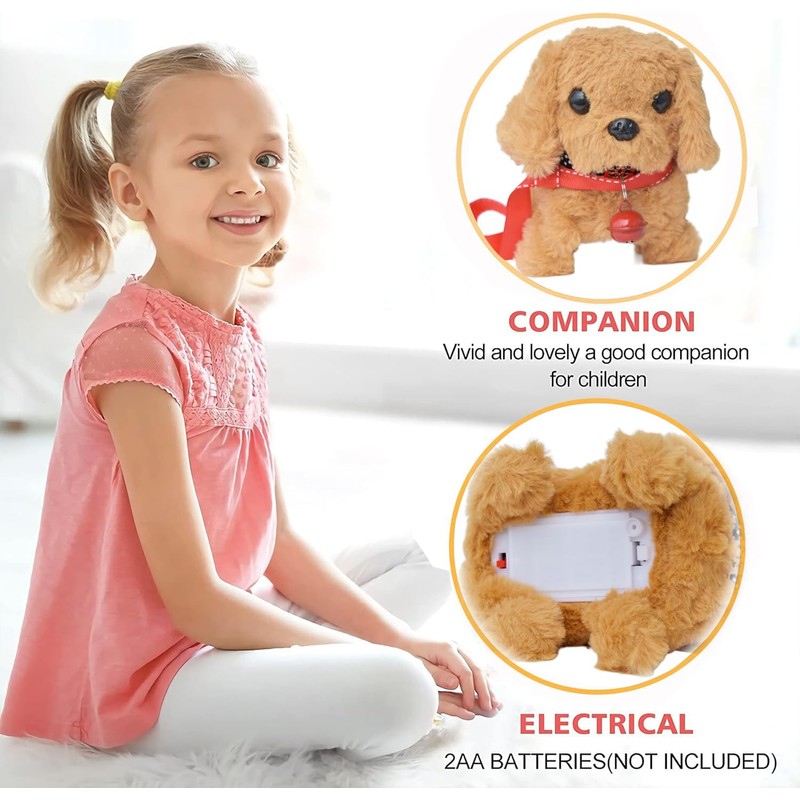 - ✅【kids Companion Pet Toy with Leash】The dog toy would walk on the ground and it could wag the tail and barking,in addition,we will send you Simulated dog leash and bell as gift. so it could provide your dear kids a realistic play scene.It is both your child's toy and their childhood companion as they grow up.
