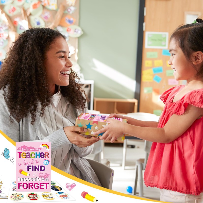 - Thank You Teacher Cards Multipack - You will receive 12 teacher thank you cards (12 styles), 12 white envelopes, 12 thank you teacher stickers. These thank cards for teacher are perfect for showing appreciation to educators from their students or children.