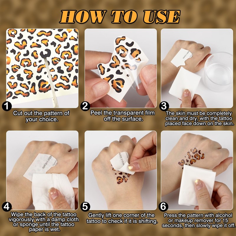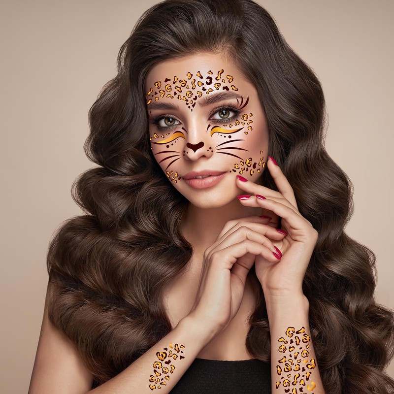 HOWAF 4 Sheets Leopard Print Tattoo, Leopard Face Tattoo Leopard Print Face Tattoo, Leopard Face Stickers, Leopard Tattoo for Halloween Leopard Costume